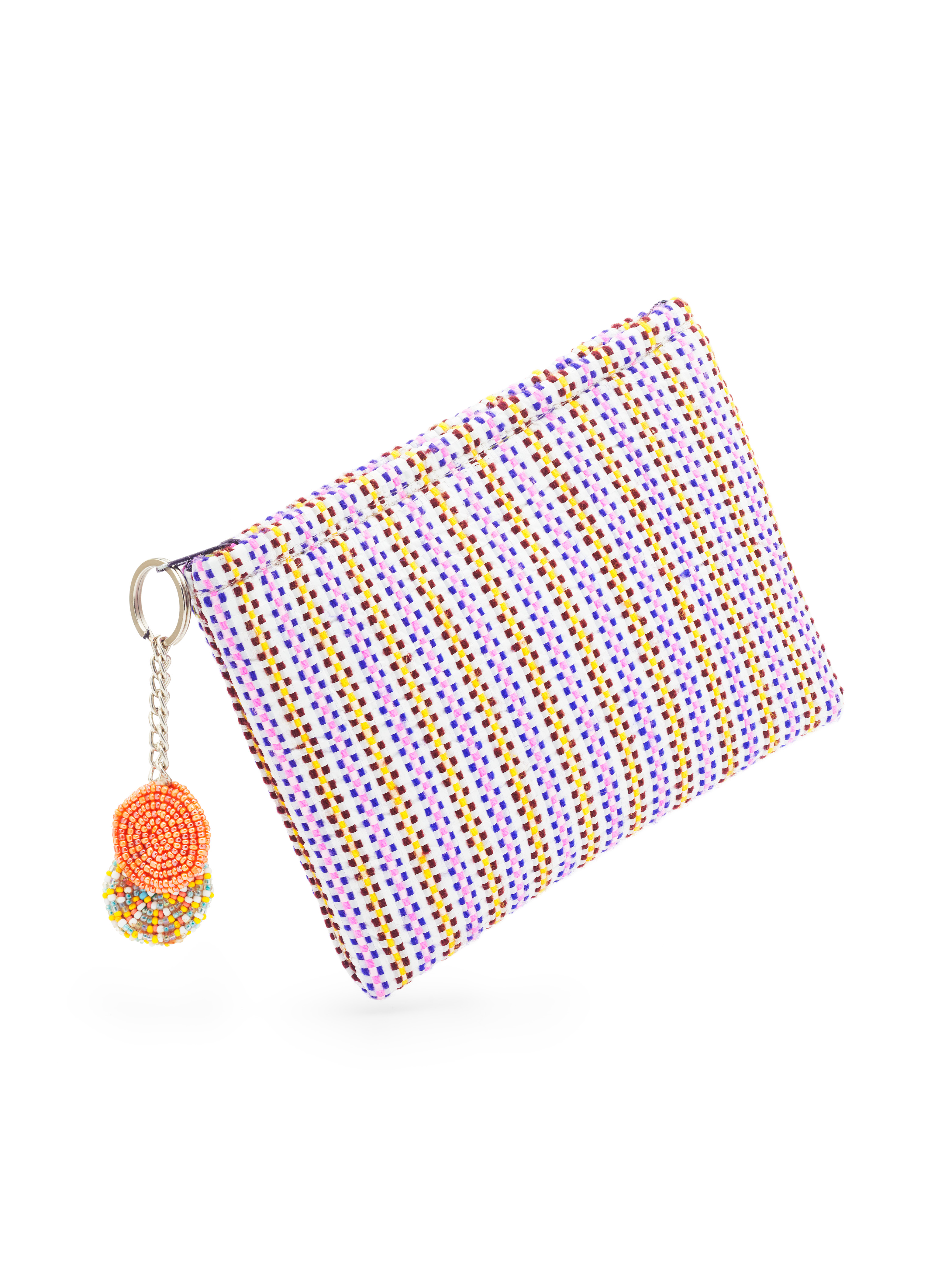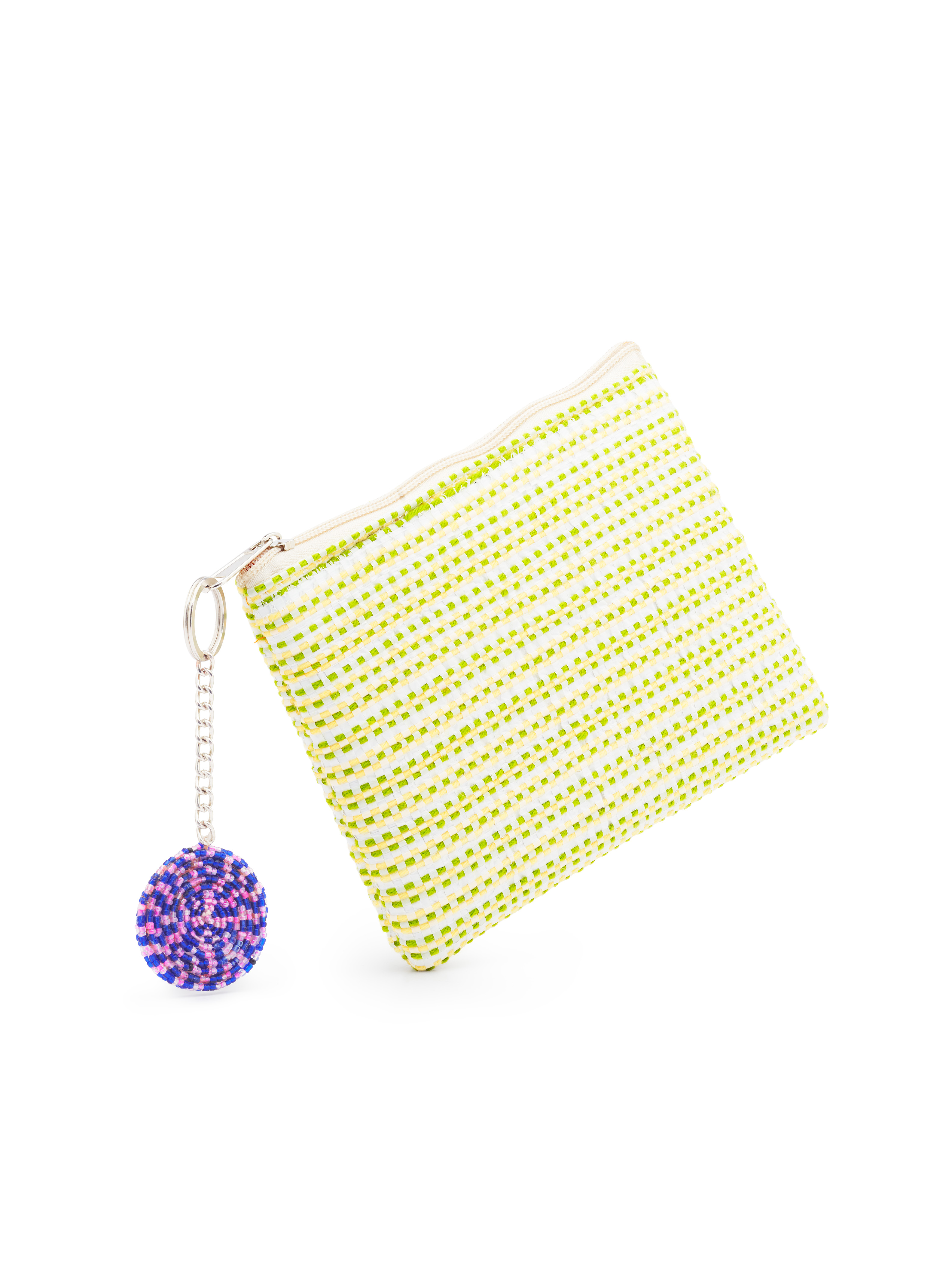 Ava Twin Weave Pouch – Olive Pink + Twin Beads Keychain Combo