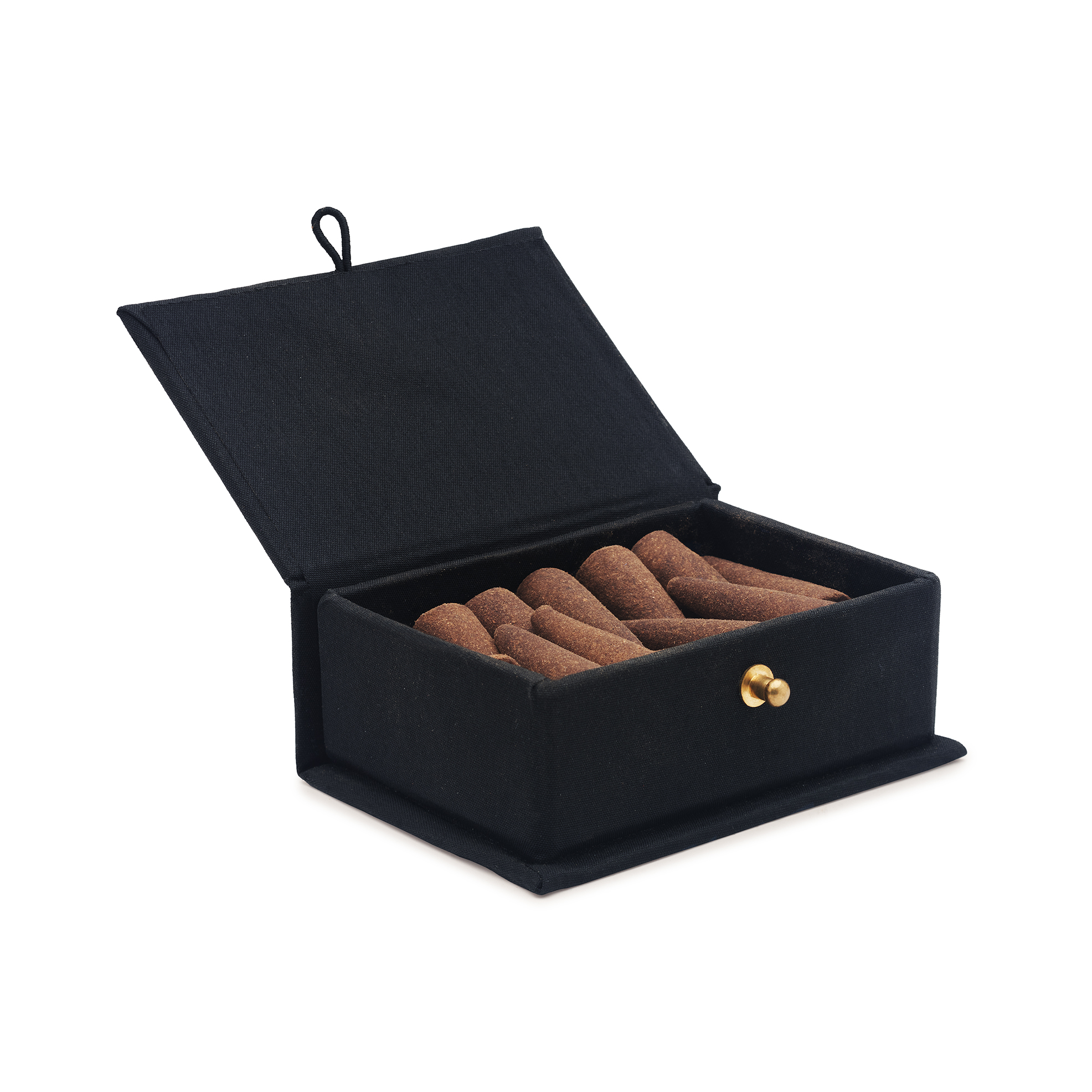 Simple, sleek, and spiritual—this handcrafted black fabric box is designed to hold dhoopbatti in an elegant and organised way. The soft matte finish of the fabric paired with a classic gold button closure adds a touch of sophistication, making it a beautiful choice for personal use or gifting during festive occasions, rituals, or wellness practices.