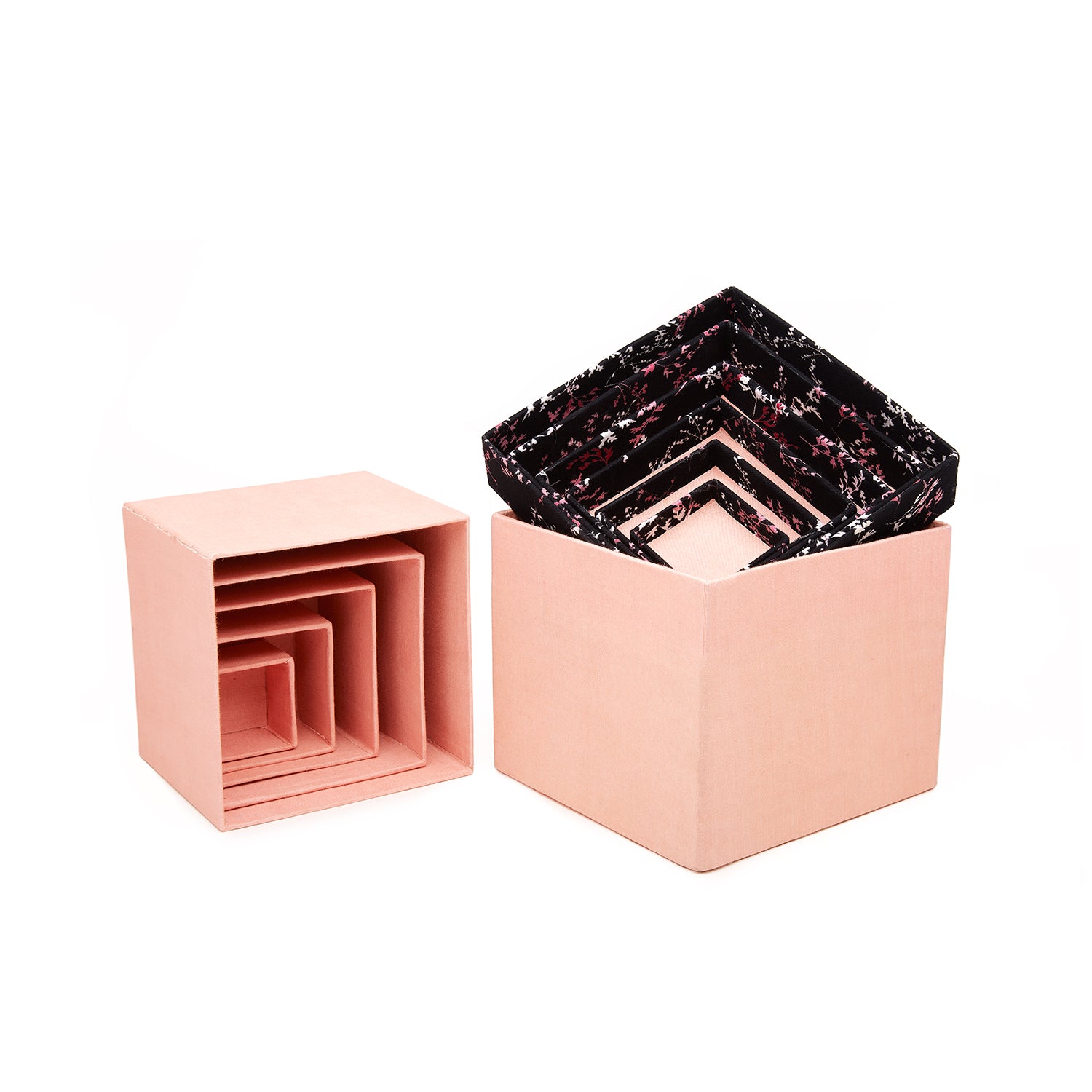 Gift Box Set of 6 – Flower Design on a Blue with Pink
