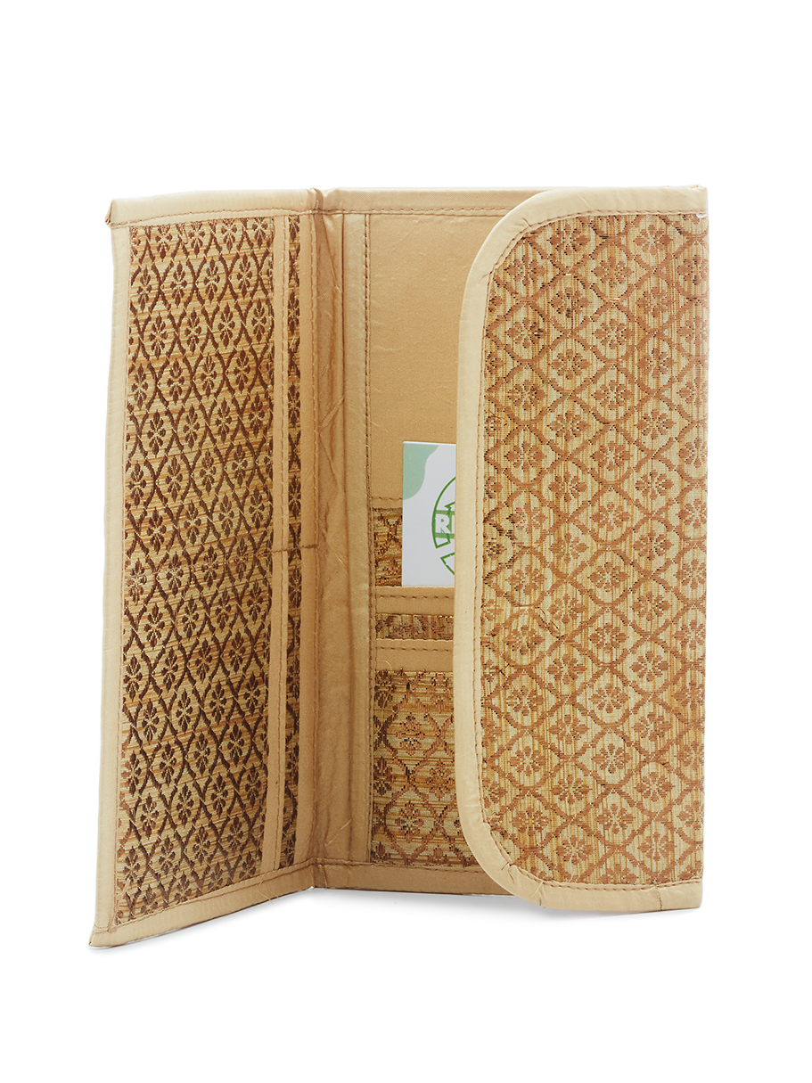 This Golden Flora Print Cloth Wallet is made of waste fabric.