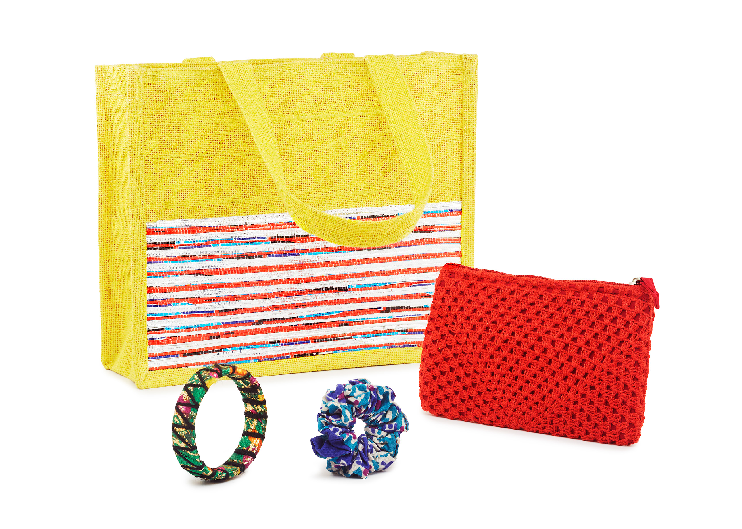 This joyfully curated combo is a celebration of color, craftsmanship, and sustainability. Designed for those who love accessories with personality and purpose, each piece is thoughtfully handcrafted from upcycled materials—turning waste into beauty and dignity.